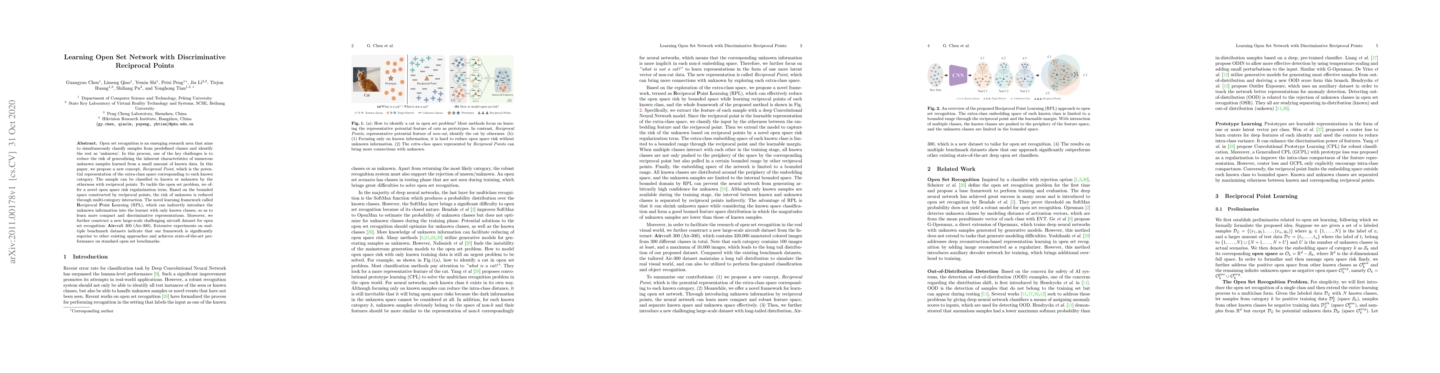 This paper proposes a new learning framework called Reciprocal Point Learning (RPL) that tackles open set recognition by using reciprocal points to represent the extra-class space for each known category, reducing the risk of generalizing unknown samples.