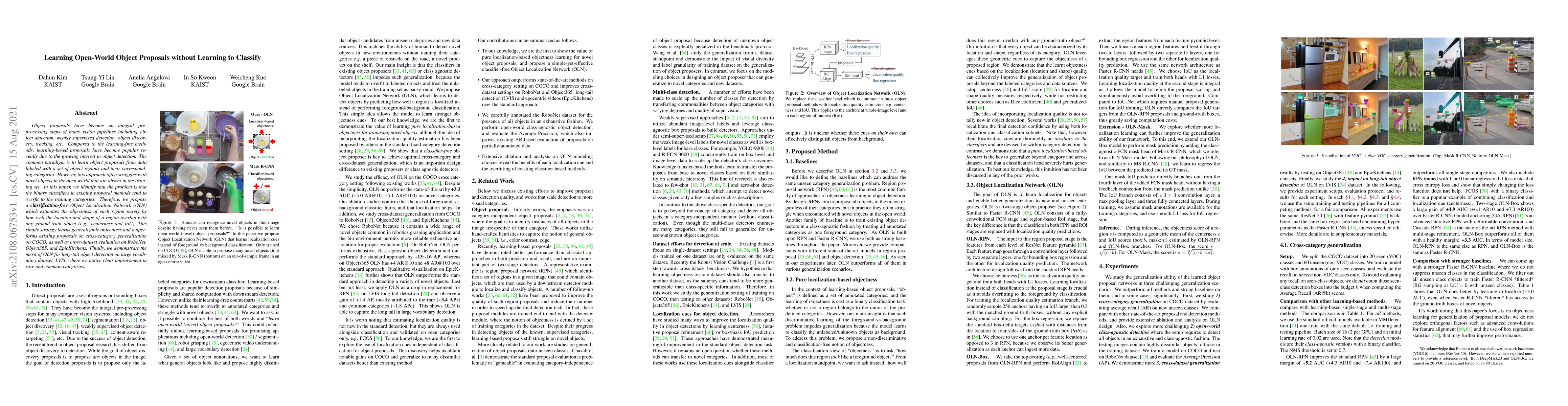 This paper proposes a classification-free Object Localization Network (OLN) to generate object proposals without relying on category labels, addressing the issue of overfitting to training categories. OLN estimates objectness based on region overlap metrics, demonstrating improved cross-category generalization and long-tail object detection performance.