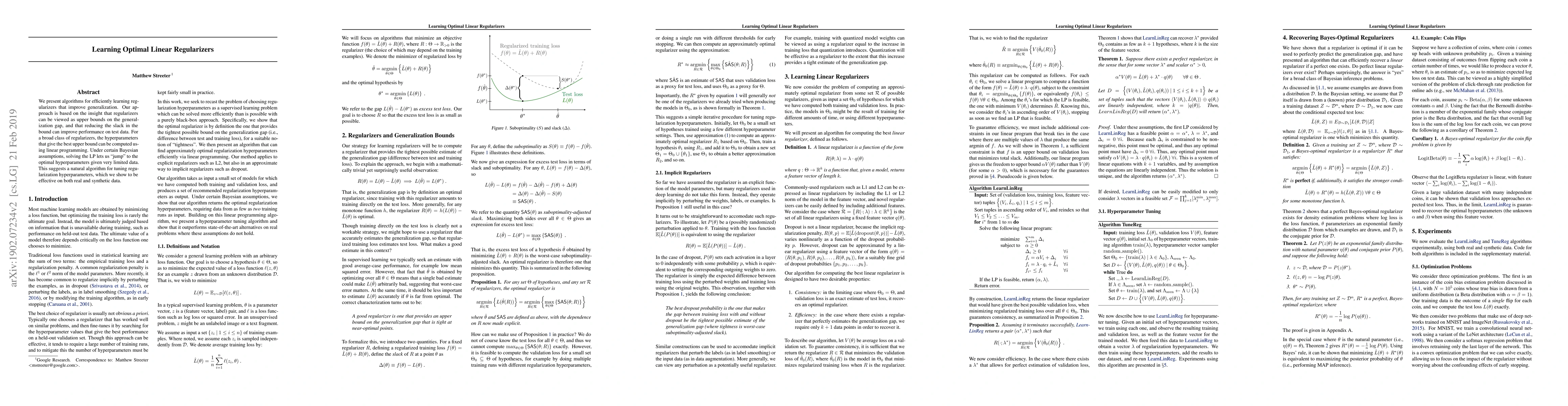 We present algorithms for efficiently learning regularizers that improve generalization. Our approach is based on the insight that regularizers can be viewed as upper bounds on the generalization gap, and that reducing the slack in the bound can improve performance on test data. For a broad class of regularizers, the hyperparameters that give the best upper bound can be computed using linear programming. Under certain Bayesian assumptions, solving the LP lets us "jump" to the optimal hyperparameters given very limited data. This suggests a natural algorithm for tuning regularization hyperparameters, which we show to be effective on both real and synthetic data.
