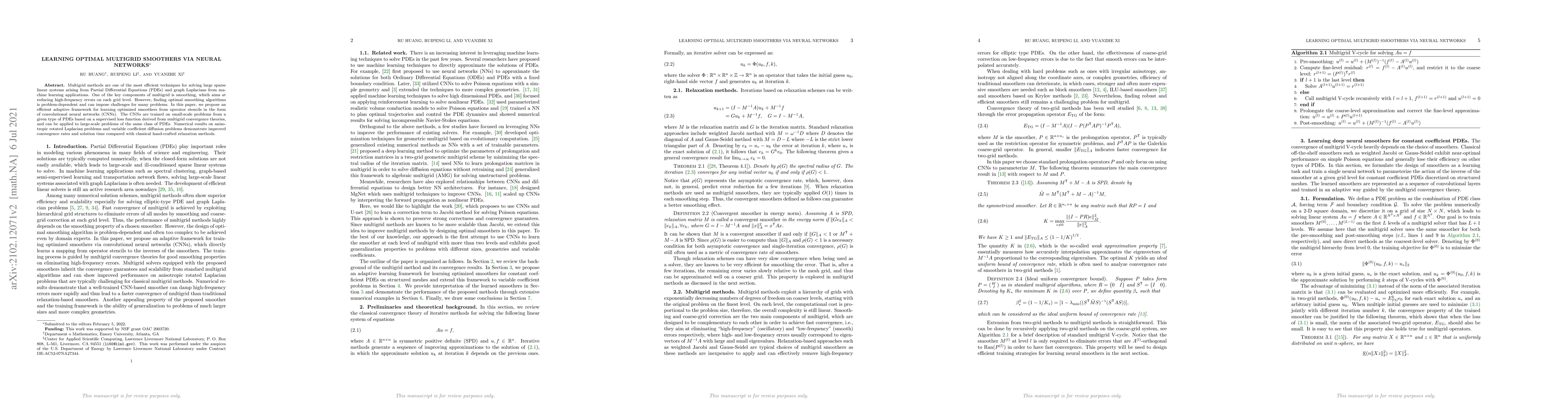 This paper proposes a convolutional neural network (CNN) framework for learning optimal multigrid smoothers from operator stencils, trained on small-scale PDEs to improve convergence rates for large-scale problems. The CNNs show superior performance over traditional relaxation methods in solving anisotropic rotated Laplacian problems.