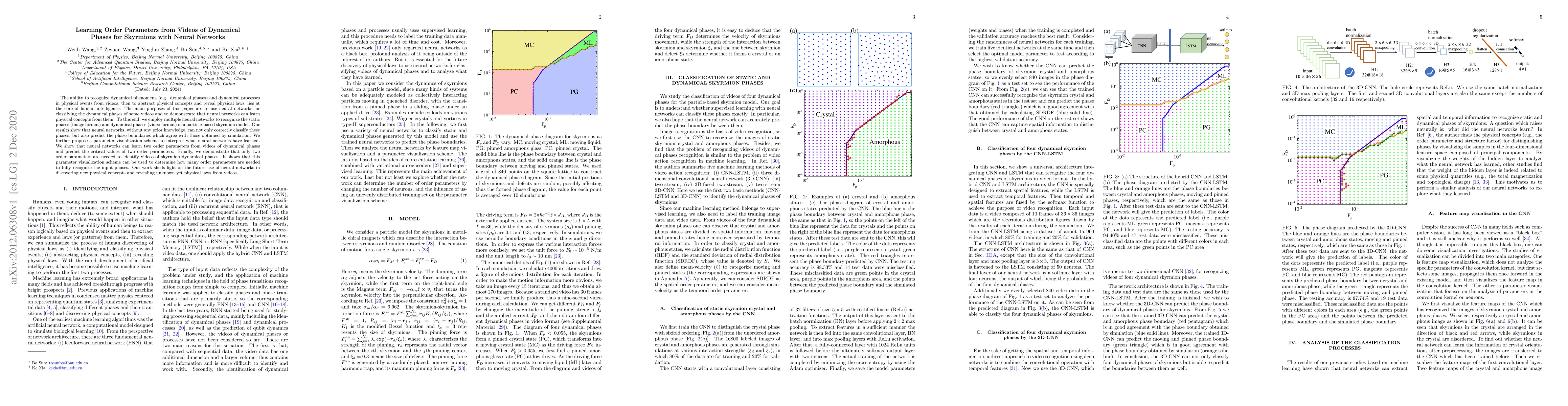 Researchers used neural networks to classify dynamical phases in videos of skyrmion models, predicting phase boundaries and identifying only two necessary order parameters.