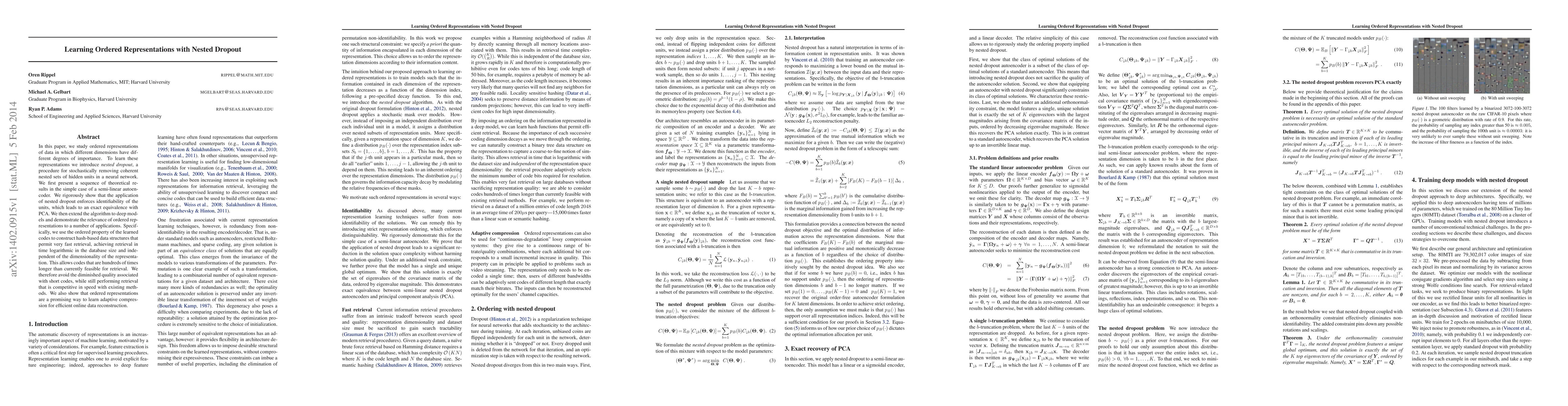 This paper introduces nested dropout to learn ordered representations in neural networks, enforcing unit identifiability and achieving equivalence with PCA. It demonstrates the effectiveness of these ordered representations in enabling fast, efficient data retrieval and adaptive compression for online data reconstruction.