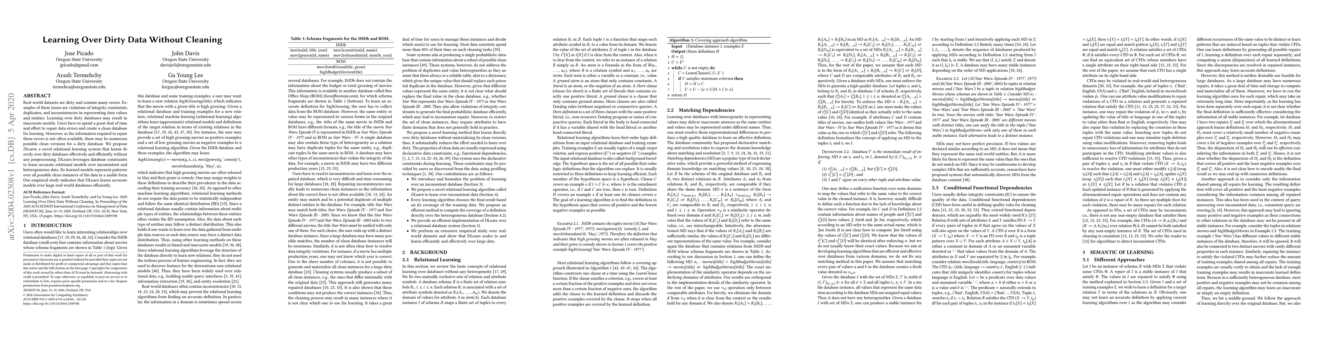 Researchers propose a new learning system called DLearn that learns directly from dirty databases without preprocessing, using database constraints to create accurate relational models.