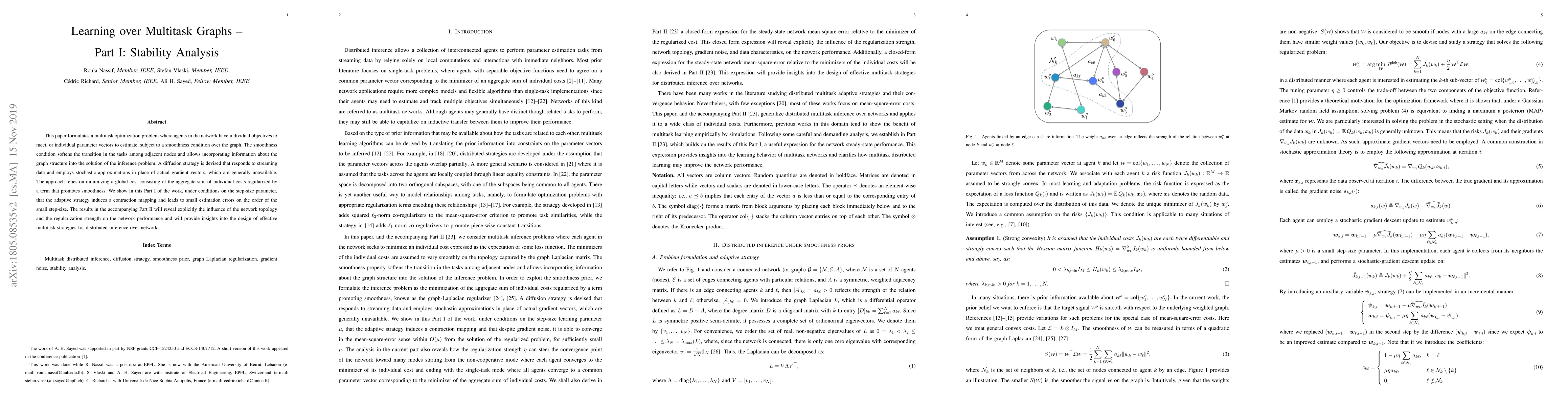 Researchers develop a method to analyze stability in multitask optimization problems over graphs, finding that it leads to small estimation errors under certain conditions. The approach is designed for distributed inference over networks.