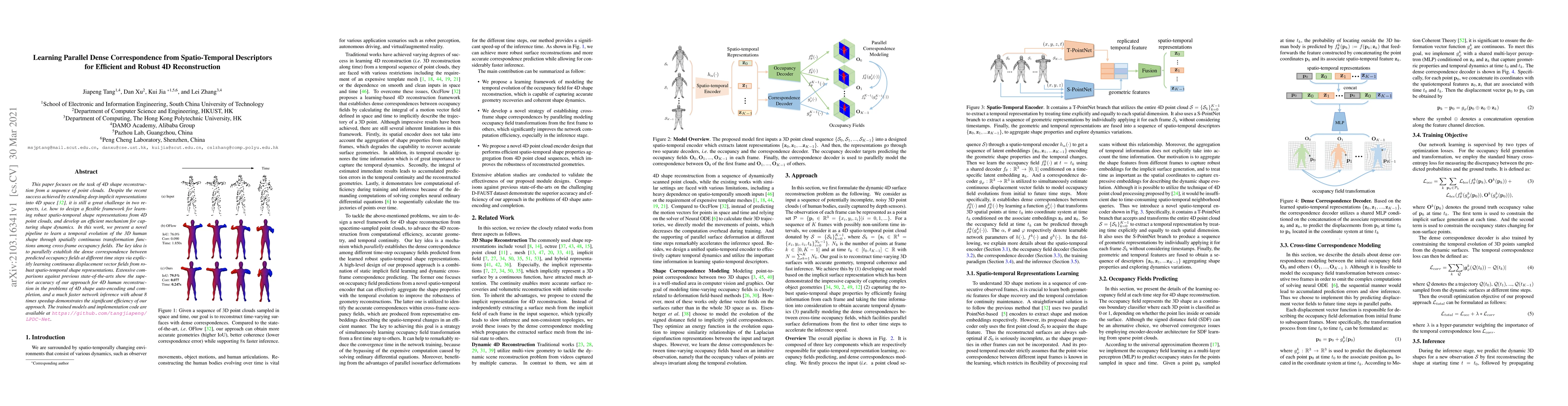 This paper proposes a novel framework for efficient and robust 4D human shape reconstruction using parallel dense correspondence learned from spatio-temporal descriptors. The method achieves superior accuracy and an 8-fold speedup compared to previous approaches.