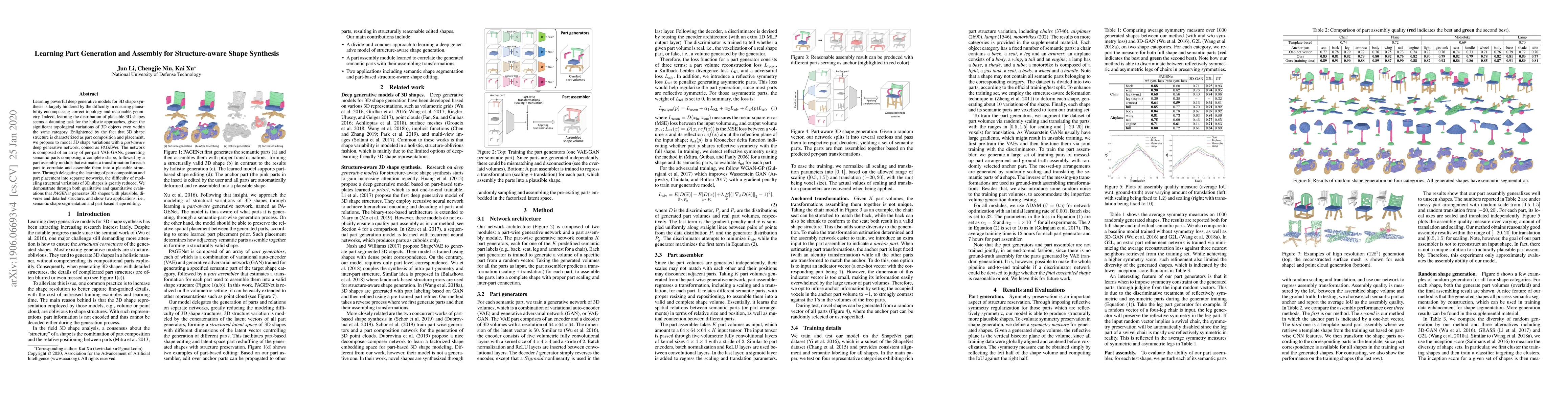 This paper proposes PAGENet, a part-aware deep generative network for 3D shape synthesis, which uses separate VAE-GANs for generating parts and an assembly module to correlate and assemble them, thus simplifying the modeling of complex 3D shape variations. The method demonstrates plausible, diverse, and detailed 3D shape generation, with applications in semantic shape segmentation and part-based editing.