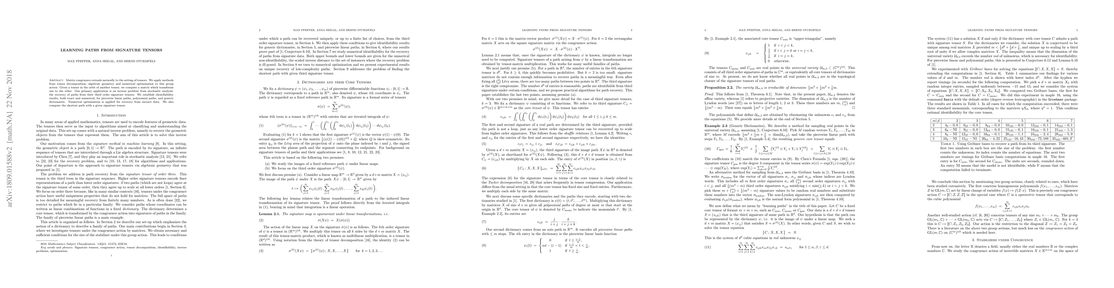 A study on using matrix congruence to analyze paths through third-order signature tensors, providing identifiability results and a method for recovering paths from inexact data.