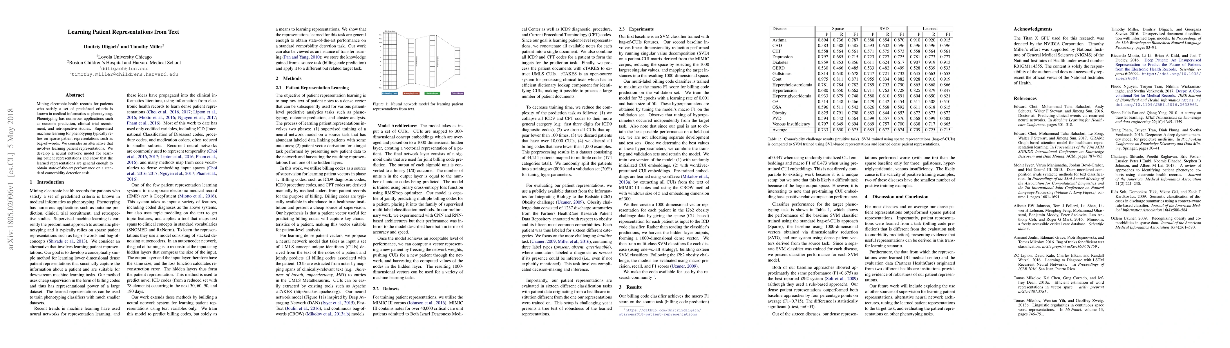 Mining electronic health records for patients who satisfy a set of predefined criteria is known in medical informatics as phenotyping. Phenotyping has numerous applications such as outcome prediction, clinical trial recruitment, and retrospective studies. Supervised machine learning for phenotyping typically relies on sparse patient representations such as bag-of-words. We consider an alternative that involves learning patient representations. We develop a neural network model for learning patient representations and show that the learned representations are general enough to obtain state-of-the-art performance on a standard comorbidity detection task.