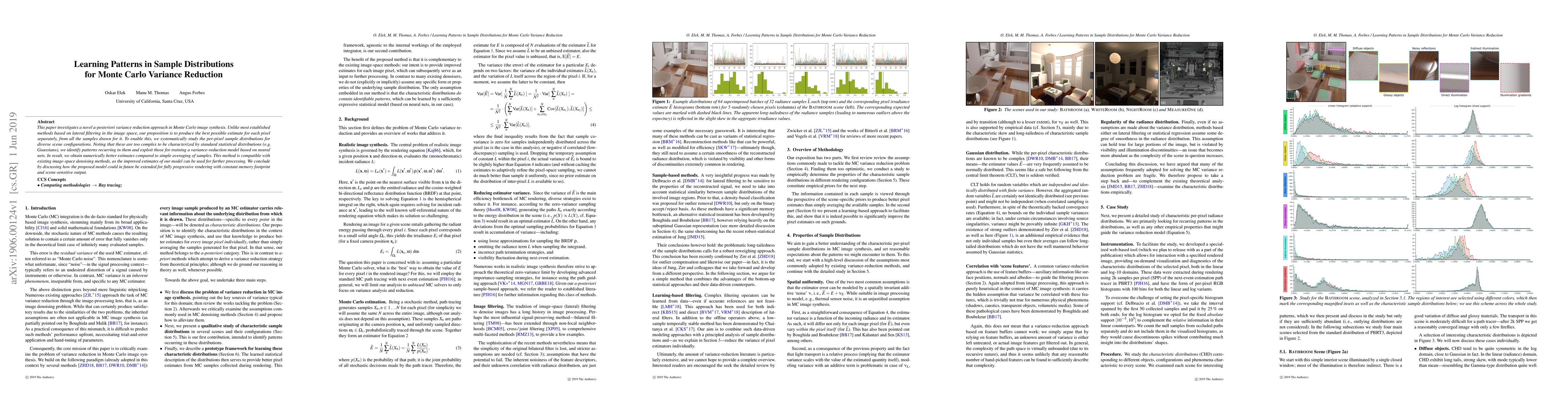 The paper introduces a learning-based variance reduction model that exploits recurring patterns in per-pixel sample distributions, trained using a neural network to provide improved Monte Carlo estimates for image synthesis.