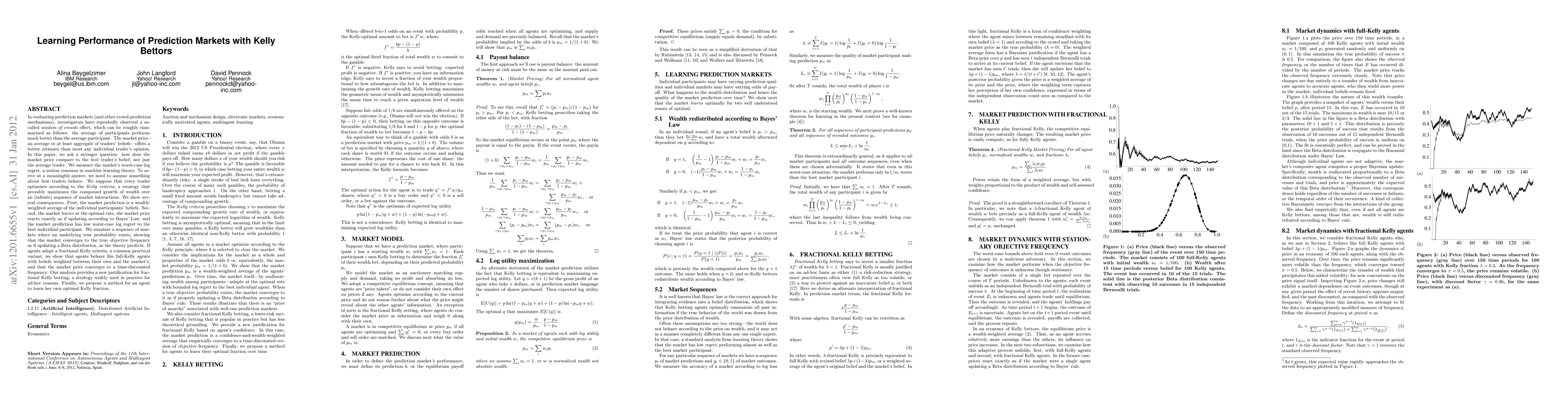In evaluating prediction markets (and other crowd-prediction mechanisms), investigators have repeatedly observed a so-called "wisdom of crowds" effect, which roughly says that the average of participants performs much better than the average participant. The market price---an average or at least aggregate of traders' beliefs---offers a better estimate than most any individual trader's opinion. In this paper, we ask a stronger question: how does the market price compare to the best trader's belief, not just the average trader. We measure the market's worst-case log regret, a notion common in machine learning theory. To arrive at a meaningful answer, we need to assume something about how traders behave. We suppose that every trader optimizes according to the Kelly criteria, a strategy that provably maximizes the compound growth of wealth over an (infinite) sequence of market interactions. We show several consequences. First, the market prediction is a wealth-weighted average of the individual participants' beliefs. Second, the market learns at the optimal rate, the market price reacts exactly as if updating according to Bayes' Law, and the market prediction has low worst-case log regret to the best individual participant. We simulate a sequence of markets where an underlying true probability exists, showing that the market converges to the true objective frequency as if updating a Beta distribution, as the theory predicts. If agents adopt a fractional Kelly criteria, a common practical variant, we show that agents behave like full-Kelly agents with beliefs weighted between their own and the market's, and that the market price converges to a time-discounted frequency. Our analysis provides a new justification for fractional Kelly betting, a strategy widely used in practice for ad-hoc reasons. Finally, we propose a method for an agent to learn her own optimal Kelly fraction.
