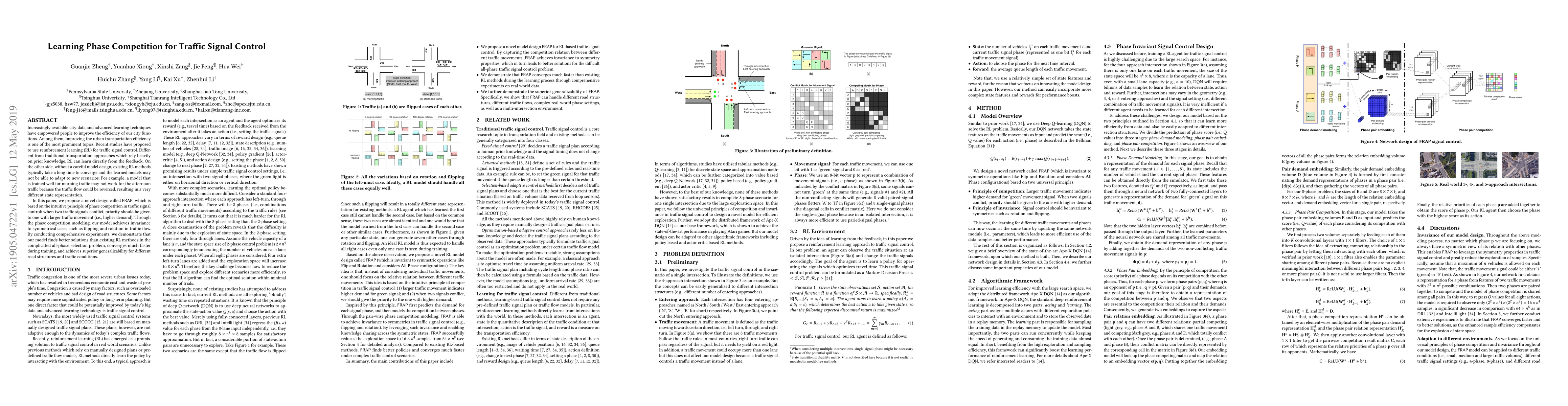 Increasingly available city data and advanced learning techniques have empowered people to improve the efficiency of our city functions. Among them, improving the urban transportation efficiency is one of the most prominent topics. Recent studies have proposed to use reinforcement learning (RL) for traffic signal control. Different from traditional transportation approaches which rely heavily on prior knowledge, RL can learn directly from the feedback. On the other side, without a careful model design, existing RL methods typically take a long time to converge and the learned models may not be able to adapt to new scenarios. For example, a model that is trained well for morning traffic may not work for the afternoon traffic because the traffic flow could be reversed, resulting in a very different state representation. In this paper, we propose a novel design called FRAP, which is based on the intuitive principle of phase competition in traffic signal control: when two traffic signals conflict, priority should be given to one with larger traffic movement (i.e., higher demand). Through the phase competition modeling, our model achieves invariance to symmetrical cases such as flipping and rotation in traffic flow. By conducting comprehensive experiments, we demonstrate that our model finds better solutions than existing RL methods in the complicated all-phase selection problem, converges much faster during training, and achieves superior generalizability for different road structures and traffic conditions.