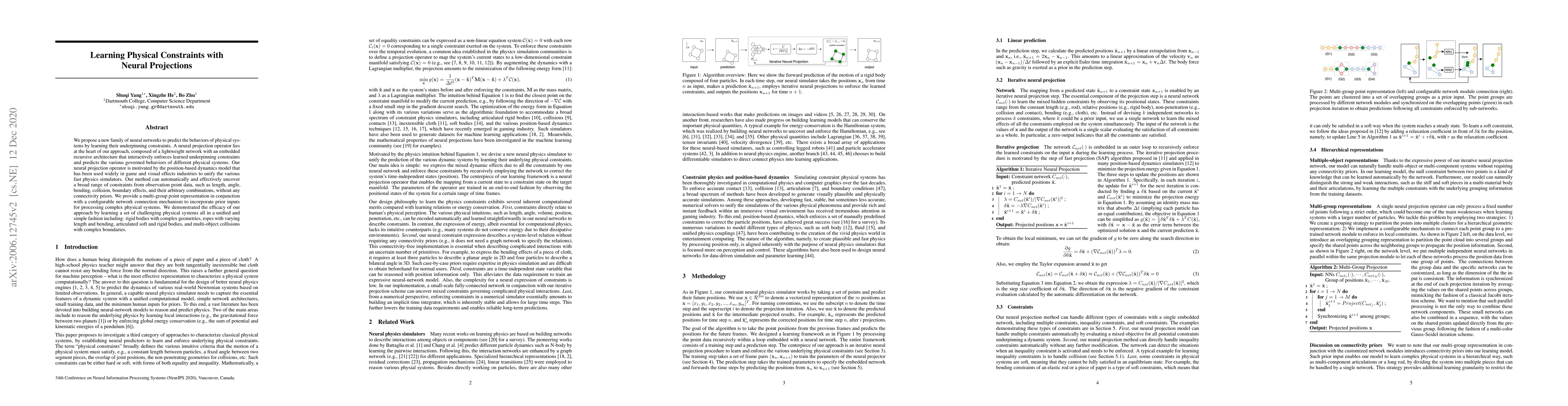 This paper introduces a novel neural network family that predicts physical system behaviors by learning underlying constraints. The core neural projection operator, inspired by position-based dynamics, effectively uncovers and enforces constraints from observational data, demonstrating success in simulating rigid bodies, ropes, and multi-object collisions.