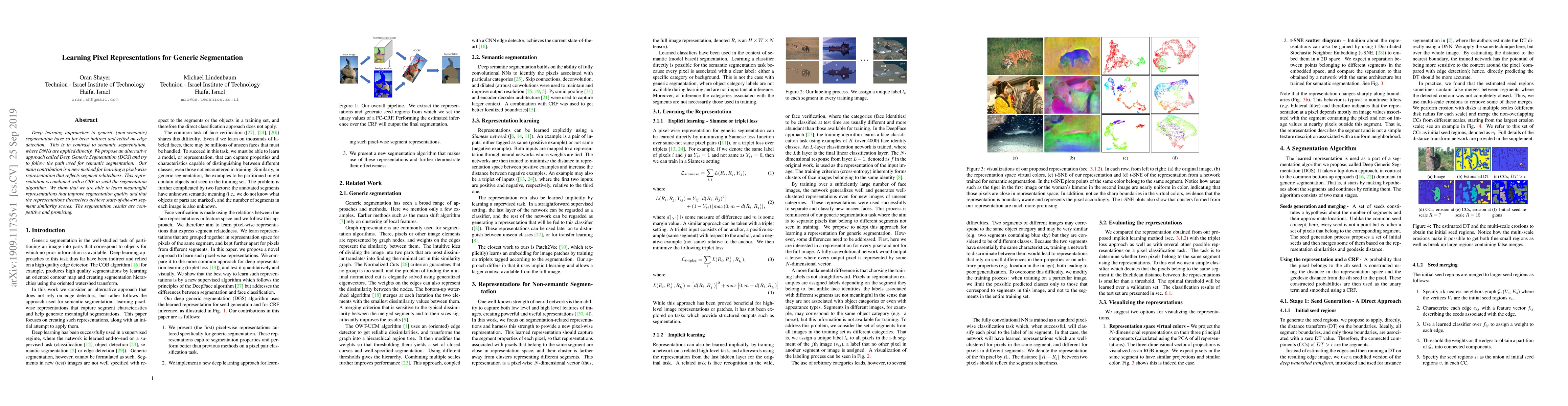 This paper proposes Deep Generic Segmentation (DGS), an approach that directly learns pixel-wise representations for generic segmentation, similar to semantic segmentation methods. The method combines these representations with a CRF to achieve competitive segmentation results and state-of-the-art segment similarity scores.
