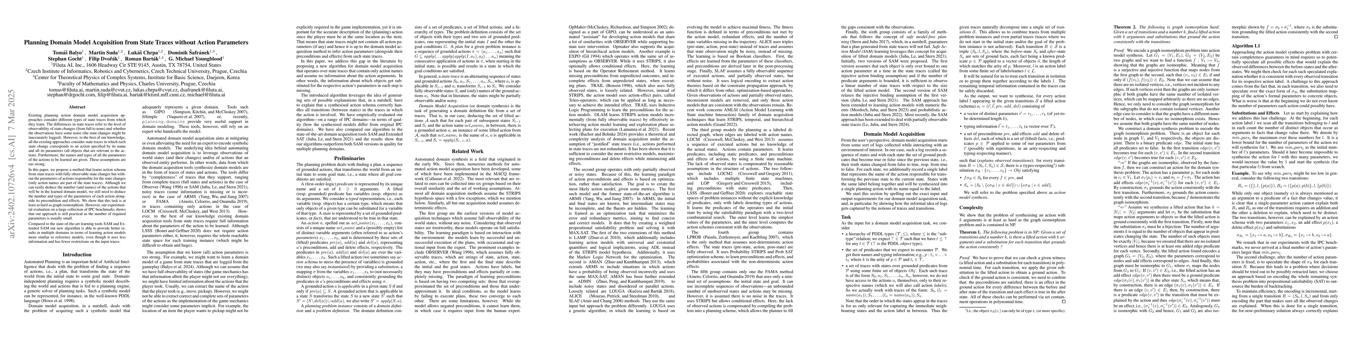 This paper proposes algorithms for learning planning action models from state traces without initial parameter information, defining two trace quality levels to deduce action names, parameters, and types. Experimental results show that the new algorithms outperform the state-of-the-art FAMA tool in speed, scalability, and accuracy.