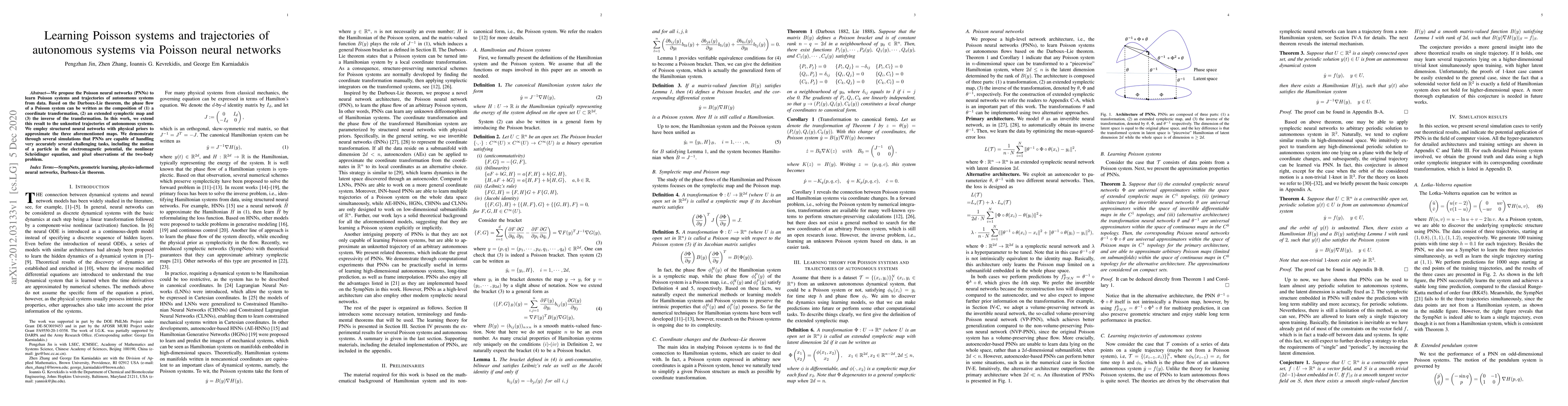 This paper proposes Poisson neural networks (PNNs) to learn Poisson systems and autonomous system trajectories using data. It employs structured neural networks with physical priors to approximate the phase flow components, demonstrating accurate handling of complex tasks like particle motion and the nonlinear Schrödinger equation.