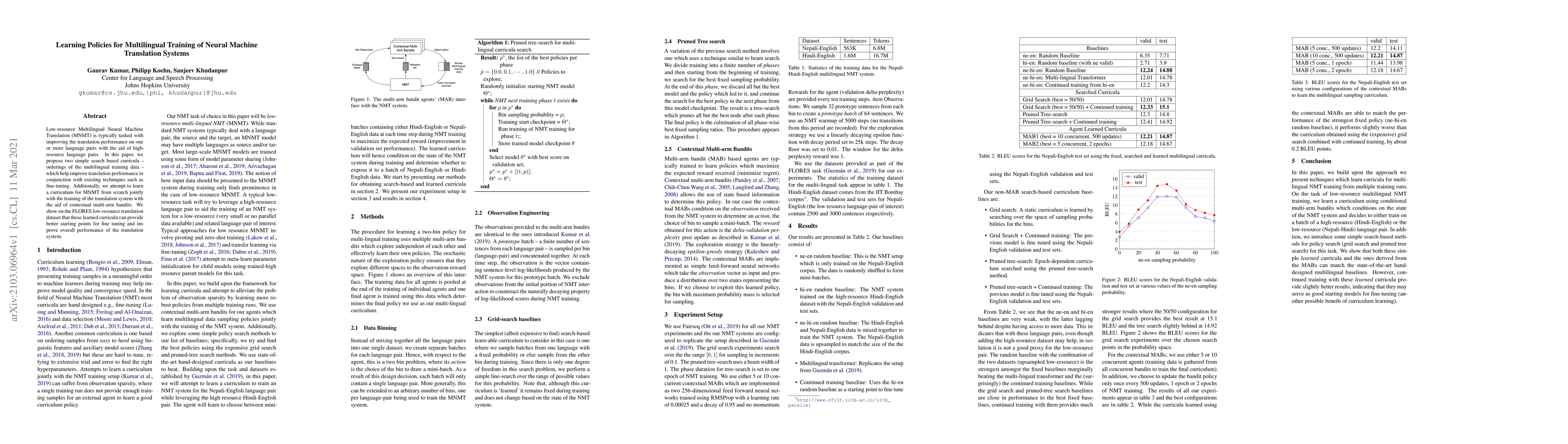 This paper proposes two search-based curricula for improving low-resource Multilingual Neural Machine Translation (MNMT) by optimizing the order of multilingual training data. It also explores learning a curriculum from scratch using contextual multi-arm bandits, demonstrating improved translation performance on the FLORES dataset.