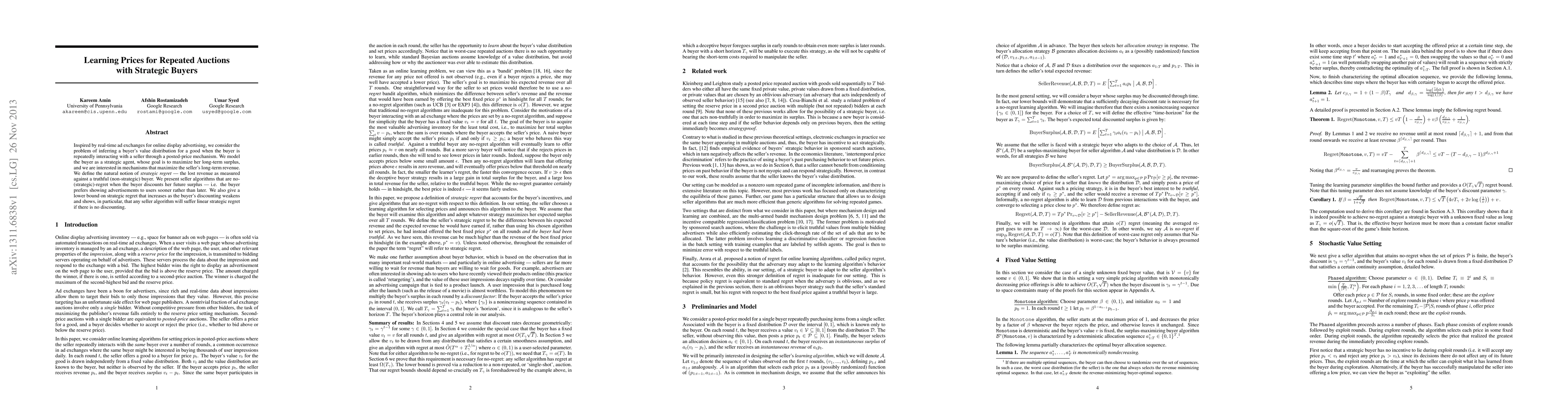 The work is novel in defining strategic regret for repeated auctions with strategic buyers and providing mechanisms that ensure no-regret for sellers under specific buyer discounting assumptions.