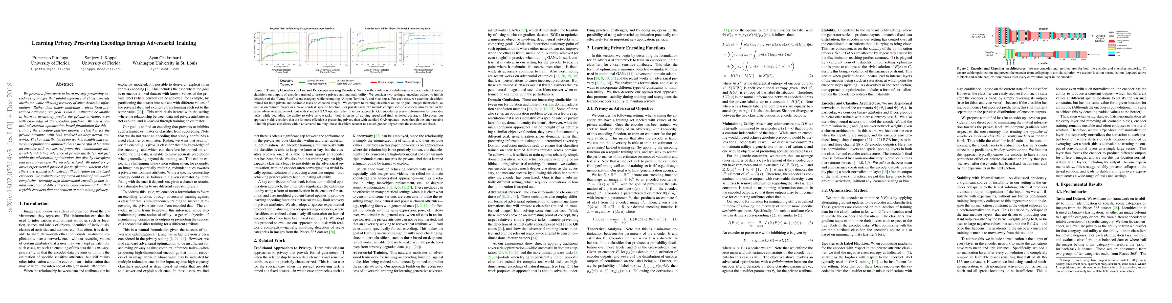 This paper introduces a framework for learning privacy-preserving image encodings that prevent inference of private attributes while retaining useful information. It employs adversarial training to develop an encoder that remains effective against classifiers trained post-encoding, achieving robust privacy protection in high-dimensional, real-world scenarios.
