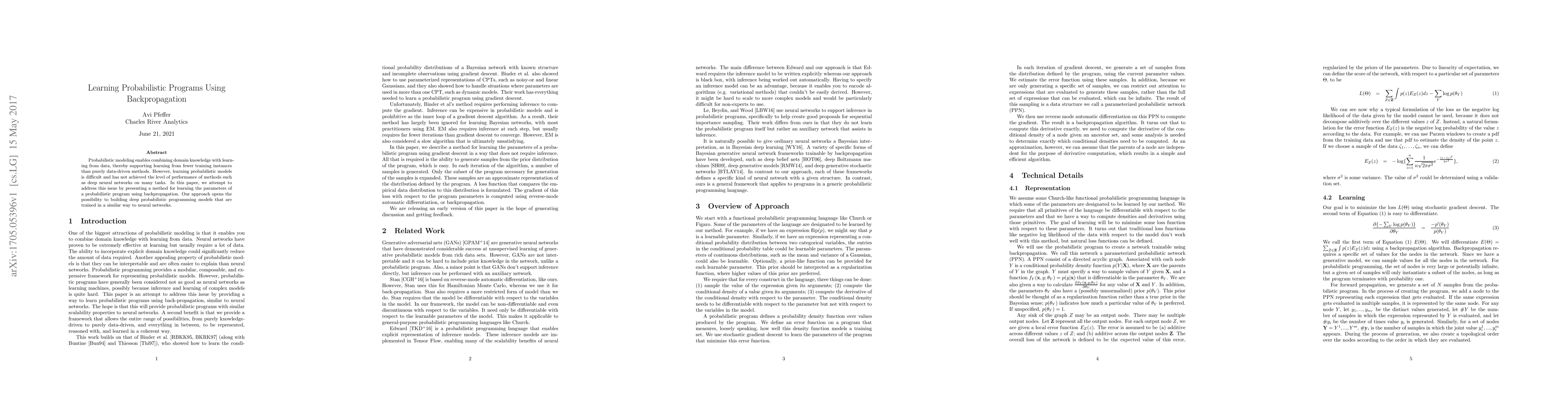 This paper proposes a method to learn the parameters of probabilistic programs using backpropagation, aiming to bridge the performance gap between probabilistic models and deep neural networks, enabling the construction of deep probabilistic programming models with neural network-like training.