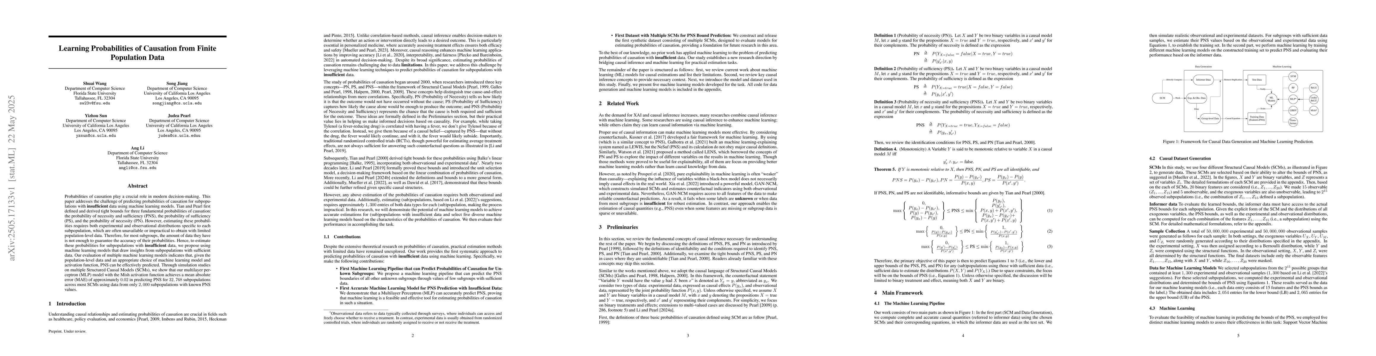 The research combines causal inference theory with machine learning, offering a novel solution to estimate causal probabilities from limited population data, which was previously considered infeasible.