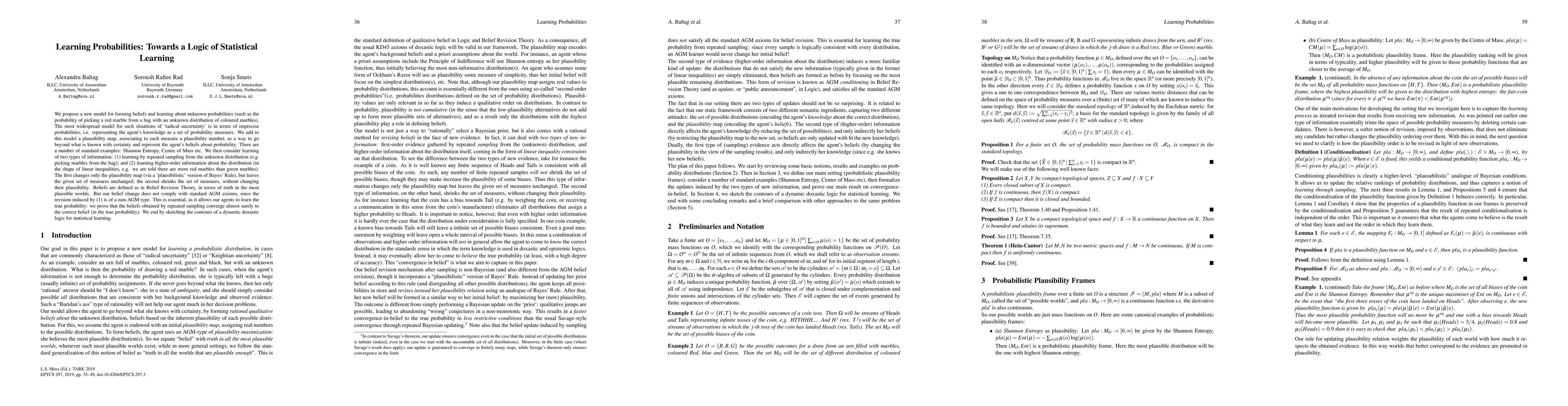 Researchers propose a new model for learning probabilities in uncertain situations, allowing agents to converge on the true probability through repeated sampling, and introducing a plausibility map to represent beliefs beyond certainty.