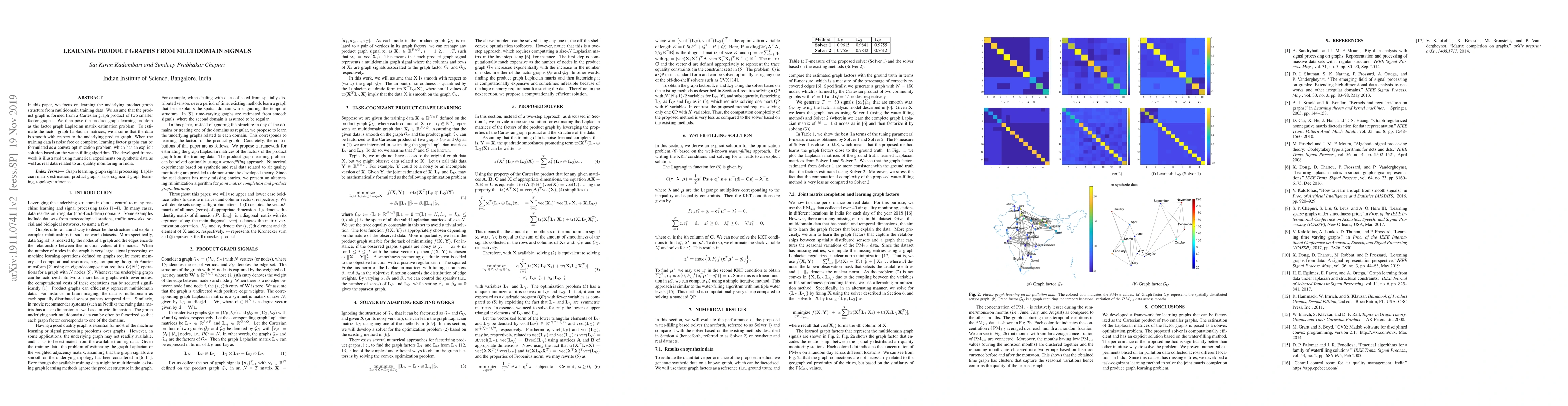 In this paper, we focus on learning the underlying product graph structure from multidomain training data. We assume that the product graph is formed from a Cartesian graph product of two smaller factor graphs. We then pose the product graph learning problem as the factor graph Laplacian matrix estimation problem. To estimate the factor graph Laplacian matrices, we assume that the data is smooth with respect to the underlying product graph. When the training data is noise free or complete, learning factor graphs can be formulated as a convex optimization problem, which has an explicit solution based on the water-filling algorithm. The developed framework is illustrated using numerical experiments on synthetic data as well as real data related to air quality monitoring in India.