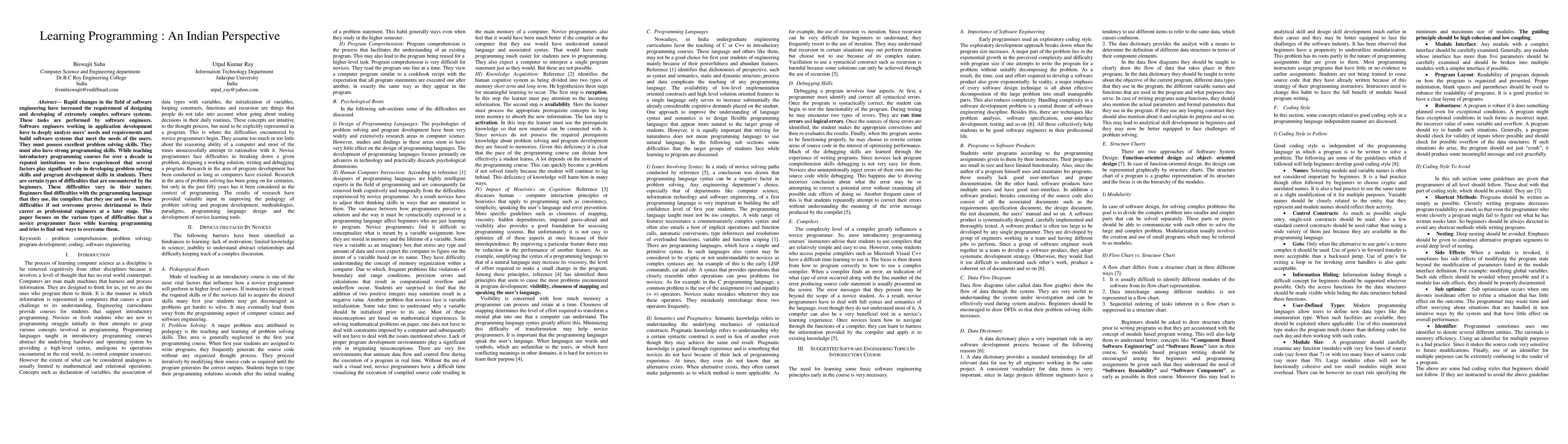 This paper identifies common difficulties faced by novice programmers in India and proposes strategies to overcome them, aiming to improve programming skills and career prospects for young engineers.