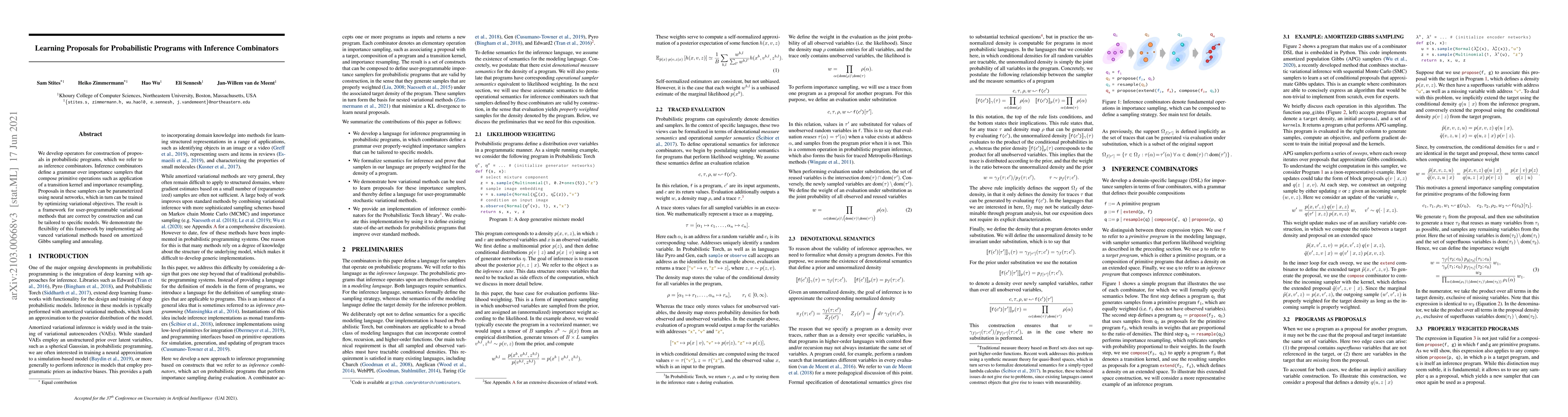 This paper introduces inference combinators to construct proposals for probabilistic programs, enabling the composition of importance samplers using neural networks. The framework allows for user-programmable variational methods, demonstrated through advanced techniques like amortized Gibbs sampling and annealing.
