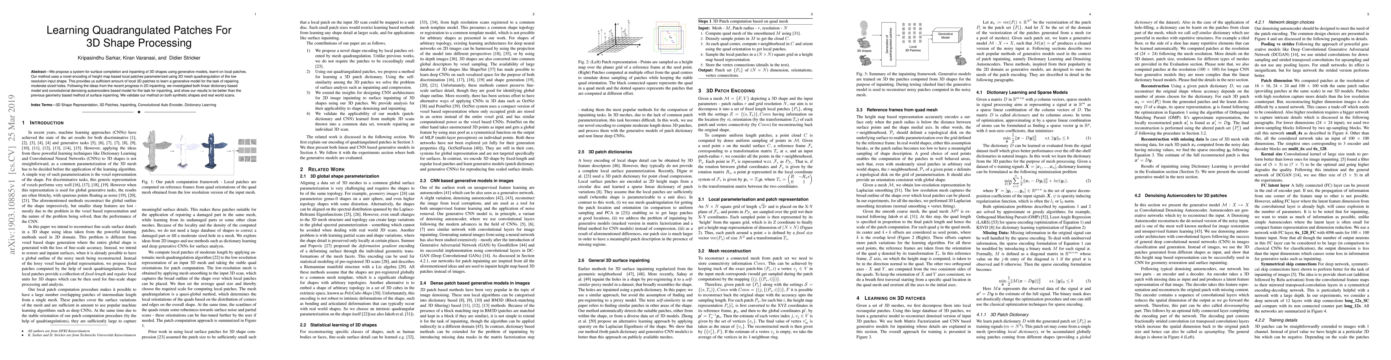 Researchers propose a system to complete and inpaint 3D shapes using generative models based on local patches, outperforming previous geometry-based methods in both synthetic and real-world scans.