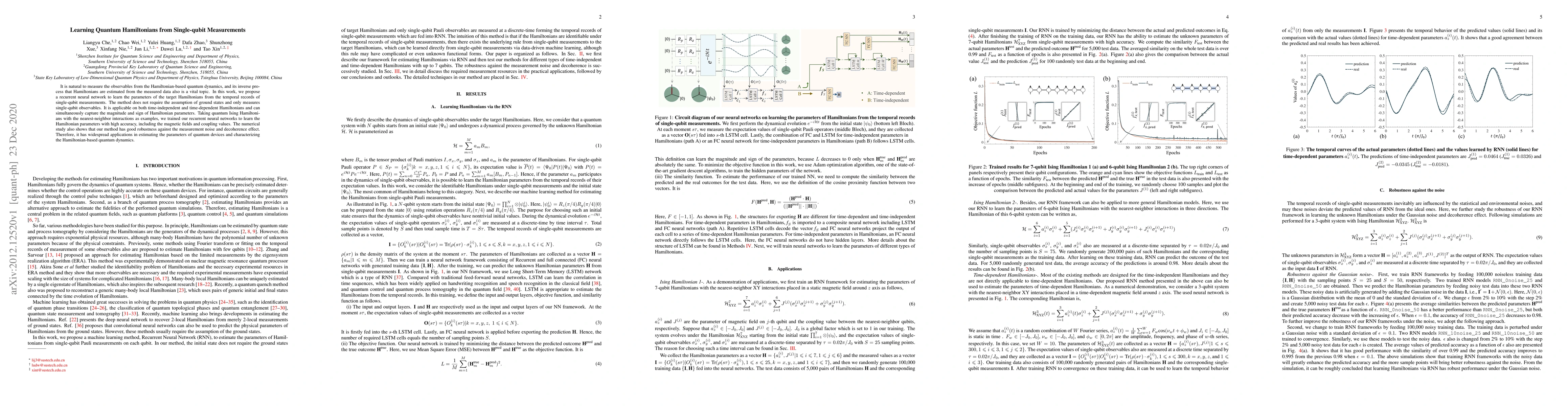 This work stands out by proposing a novel approach that uses single-qubit measurements and recurrent neural networks to learn Hamiltonian parameters, offering an efficient and robust method for characterizing quantum systems, which differs from existing techniques requiring full state tomography or multi-qubit measurements.