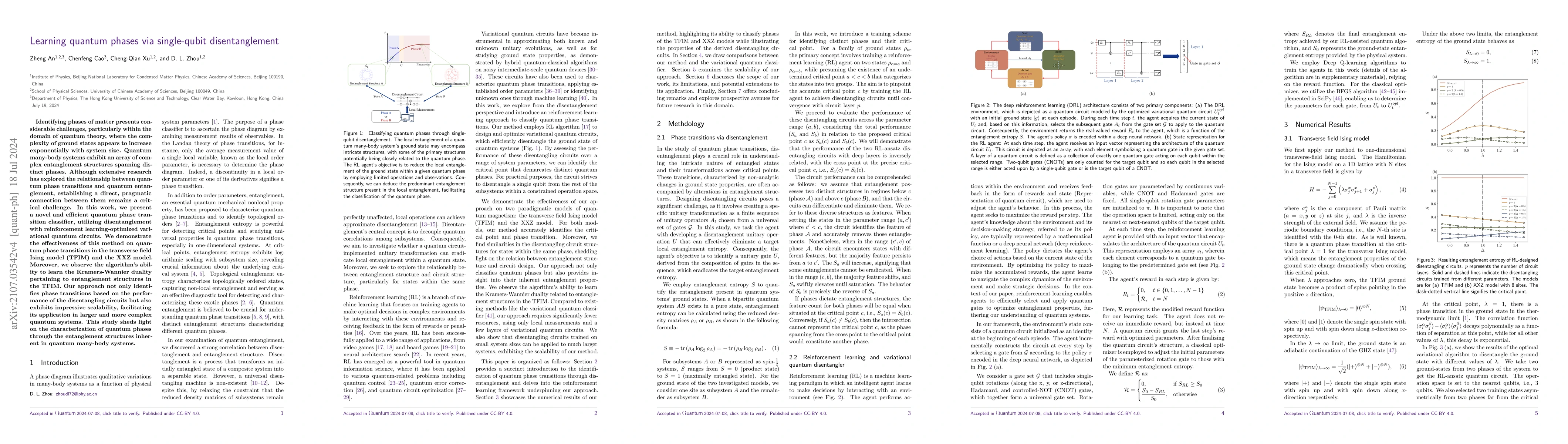 Researchers developed a quantum machine learning method to identify phases of matter in complex quantum systems by analyzing entanglement structures, demonstrating its success on the transverse field Ising model and XXZ model.