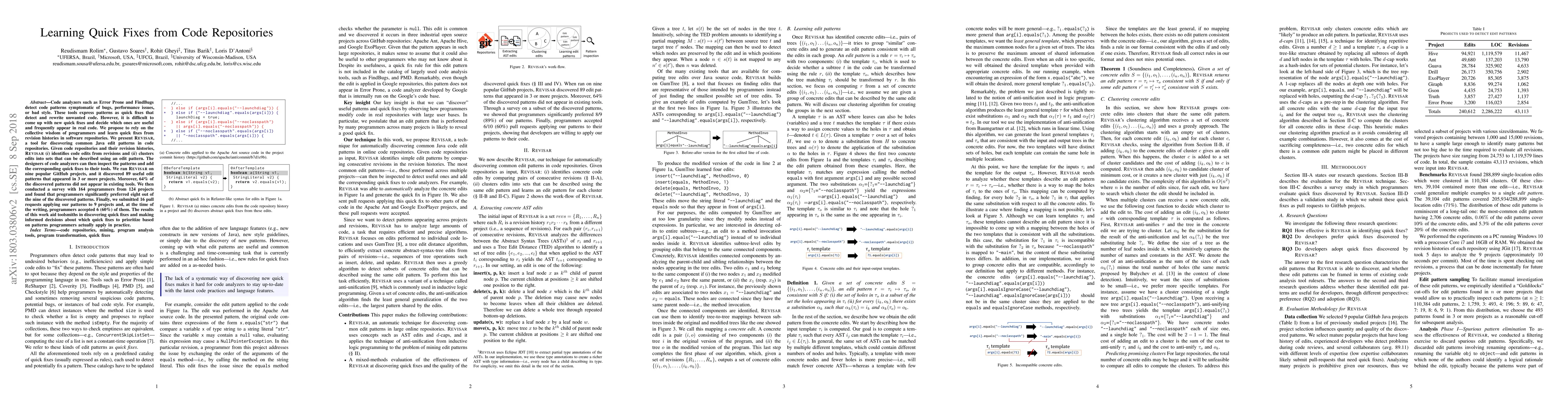 This paper proposes REVISAR, a tool that learns common Java edit patterns from code repositories to discover useful quick fixes for code analyzers. The tool identified 89 patterns from nine GitHub projects, 64% of which were not present in existing tools, and was preferred by programmers in a survey.