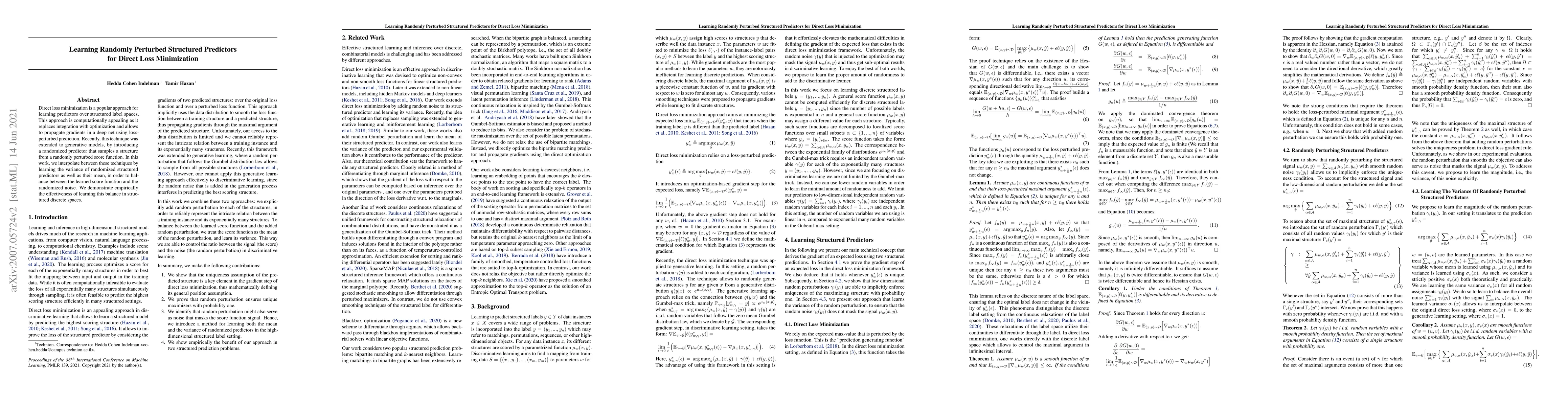 This work extends direct loss minimization by incorporating random perturbations and learning their variance, providing a new perspective on balancing learned signals and noise in structured prediction.