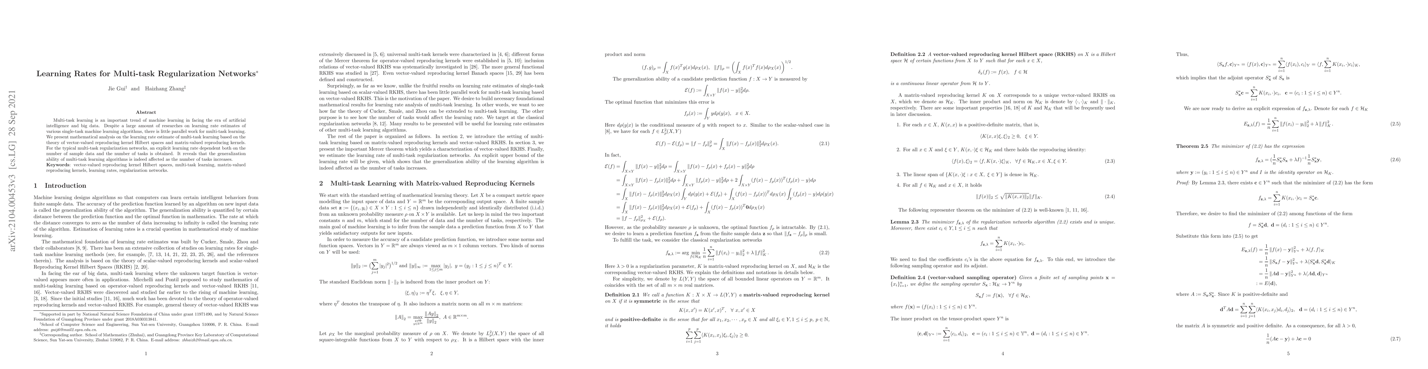 The paper presents a mathematical framework for analyzing learning rates in multi-task regularization networks using vector-valued RKHS and matrix-valued kernels, providing explicit error bounds.