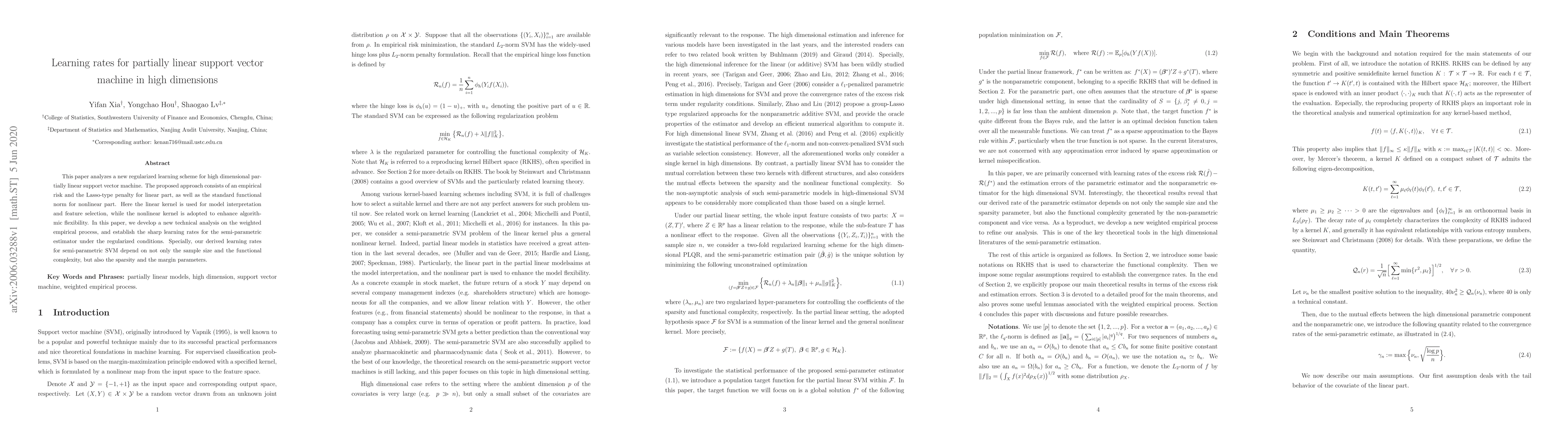 This paper analyzes a new approach for high-dimensional partially linear support vector machines, establishing sharp learning rates based on sample size, functional complexity, sparsity, and margin parameters.