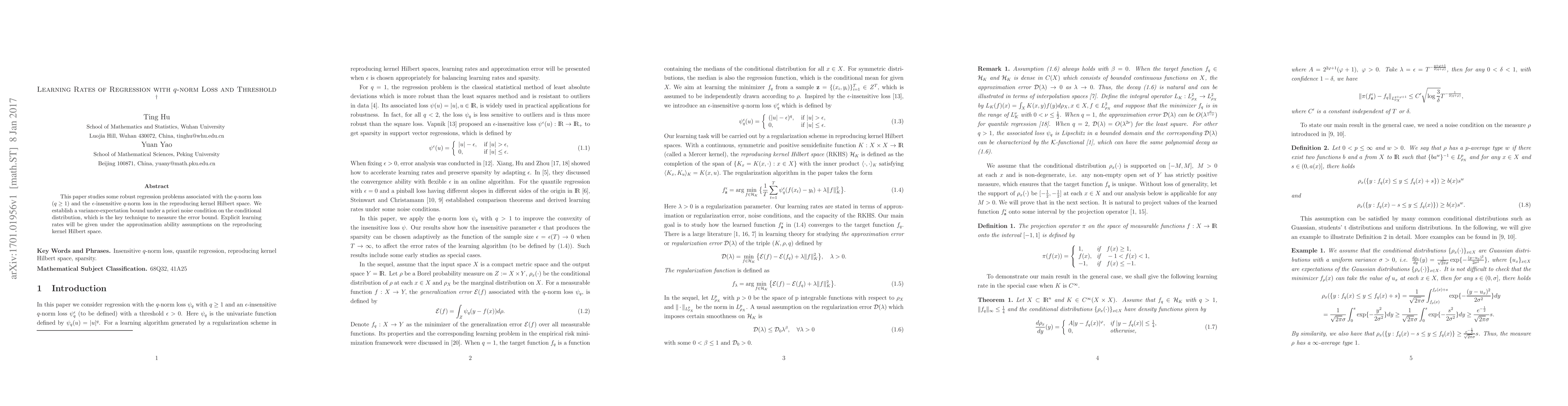 This paper studies some robust regression problems associated with the $q$-norm loss ($q\ge1$) and the $\epsilon$-insensitive $q$-norm loss in the reproducing kernel Hilbert space. We establish a variance-expectation bound under a priori noise condition on the conditional distribution, which is the key technique to measure the error bound. Explicit learning rates will be given under the approximation ability assumptions on the reproducing kernel Hilbert space.