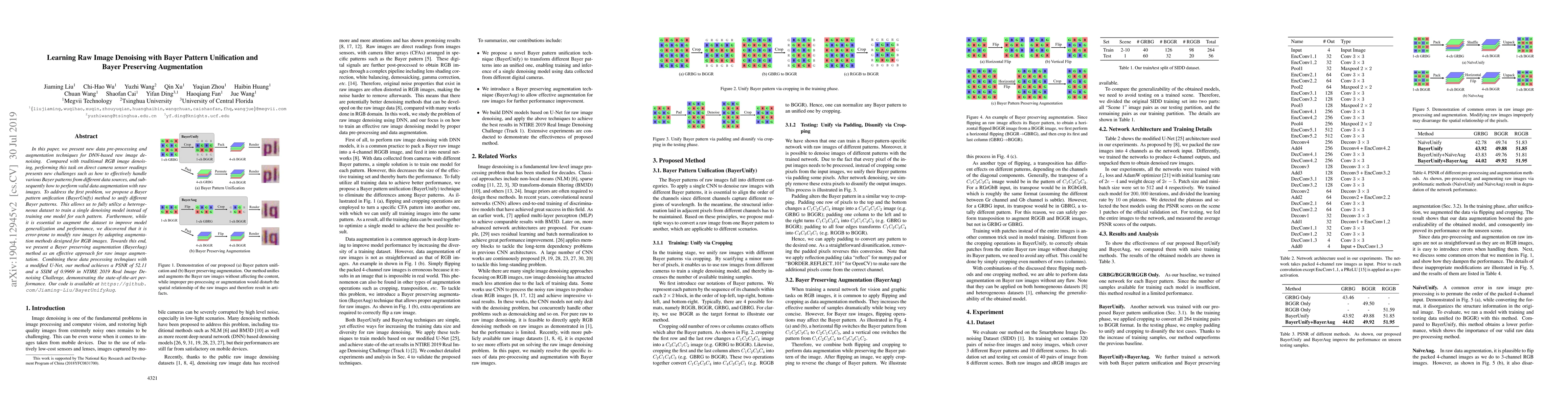 This paper introduces innovative data pre-processing and augmentation techniques for denoising raw images captured by camera sensors. It proposes a Bayer pattern unification method to handle diverse sensor patterns and a Bayer preserving augmentation technique to effectively augment raw images, leading to state-of-the-art performance in the NTIRE 2019 Real Image Denoising Challenge.