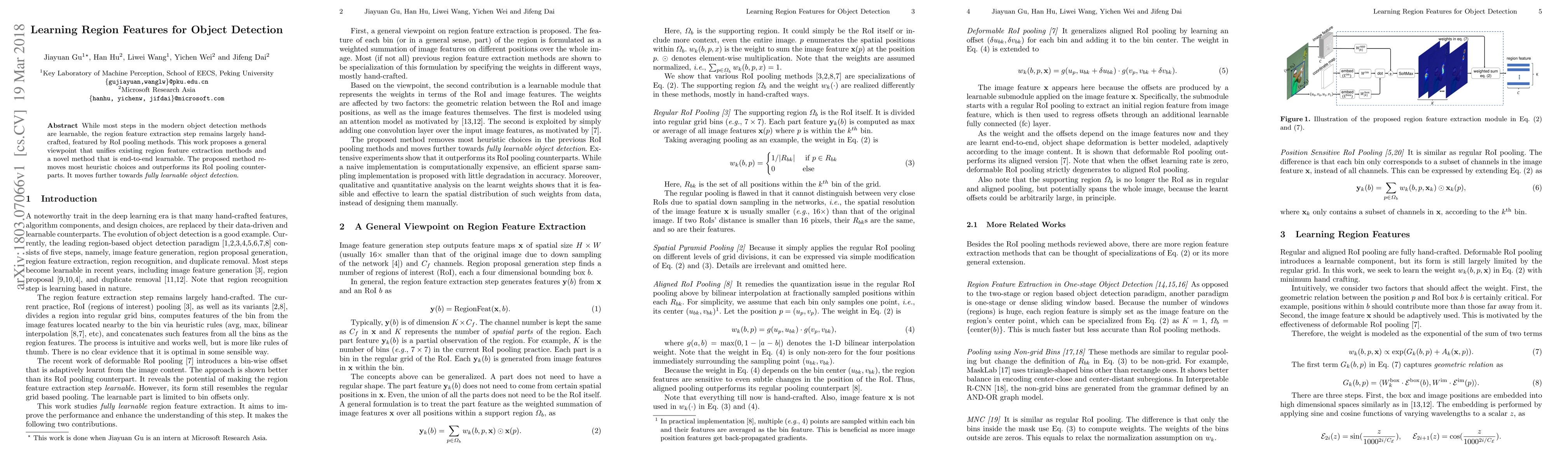 The paper introduces a learnable region feature extraction module that unifies existing methods and improves upon RoI pooling techniques.