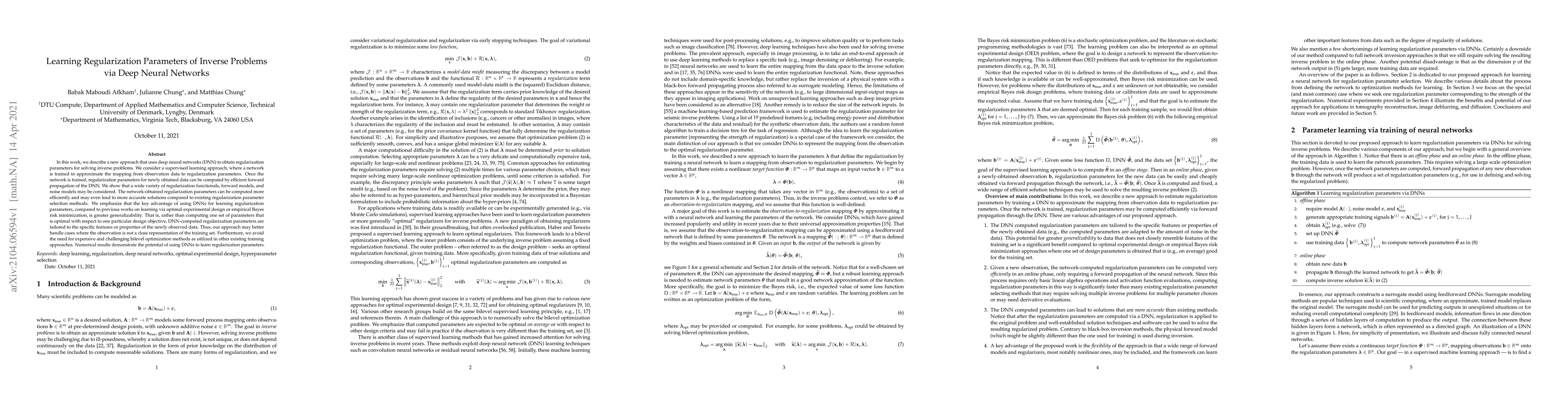 This paper proposes a deep neural network (DNN) approach to determine regularization parameters for inverse problems, trained via supervised learning to map observation data to the parameters. The DNN-computed parameters offer greater generalizability and efficiency, potentially leading to more accurate solutions than traditional methods.