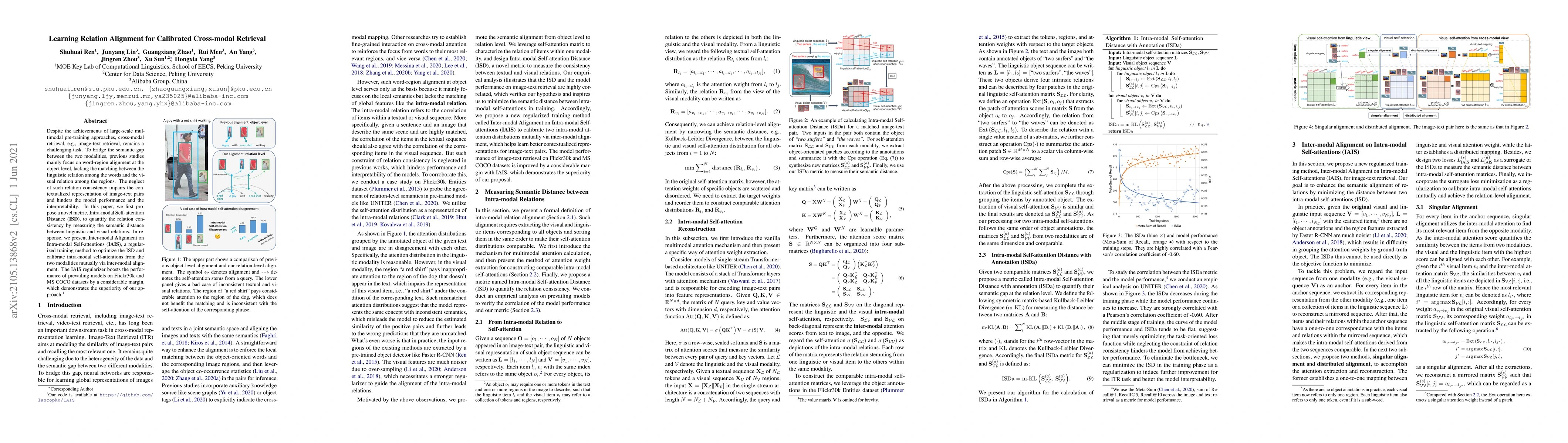 This paper proposes a novel metric, Intra-modal Self-attention Distance (ISD), to measure relation consistency in cross-modal retrieval. It introduces Inter-modal Alignment on Intra-modal Self-attentions (IAIS) to optimize ISD and calibrate self-attentions, significantly improving performance on image-text retrieval tasks.