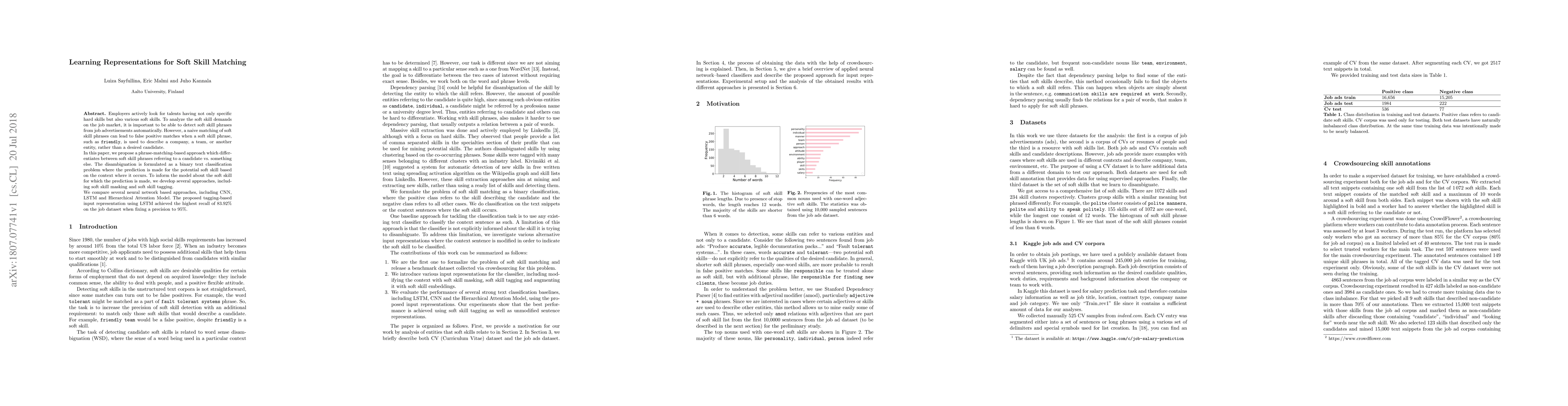 This paper proposes a method to accurately detect soft skill phrases in job advertisements, distinguishing them from irrelevant uses. It employs a binary text classification approach to differentiate candidate-related soft skills and uses neural networks like LSTM for optimal performance, achieving 83.92% recall with 95% precision.
