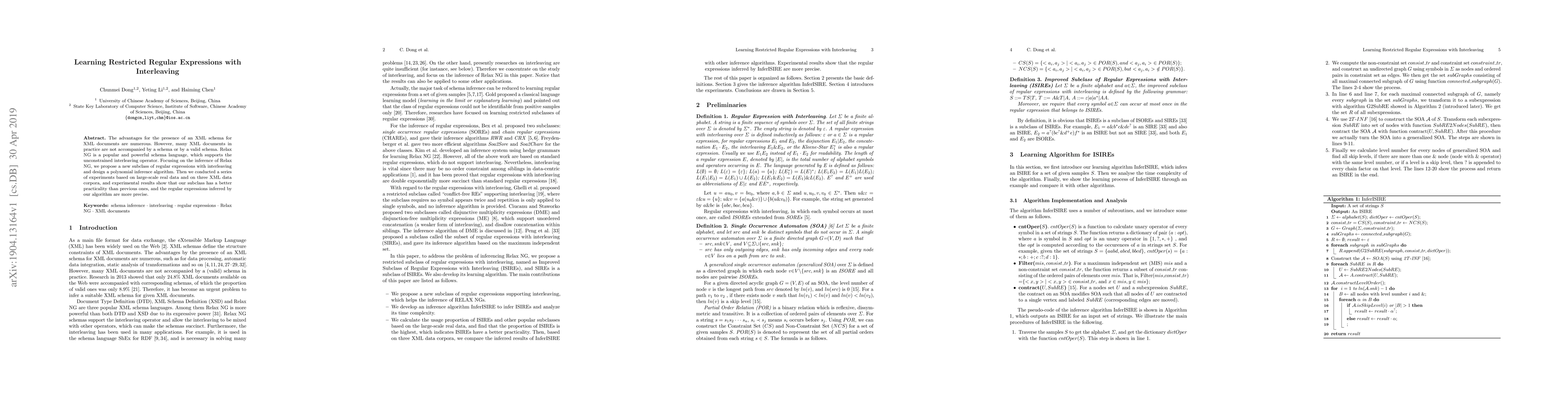 Researchers developed a new subclass of regular expressions with interleaving for Relax NG schema inference, achieving better practicality and precision in inferring XML documents.