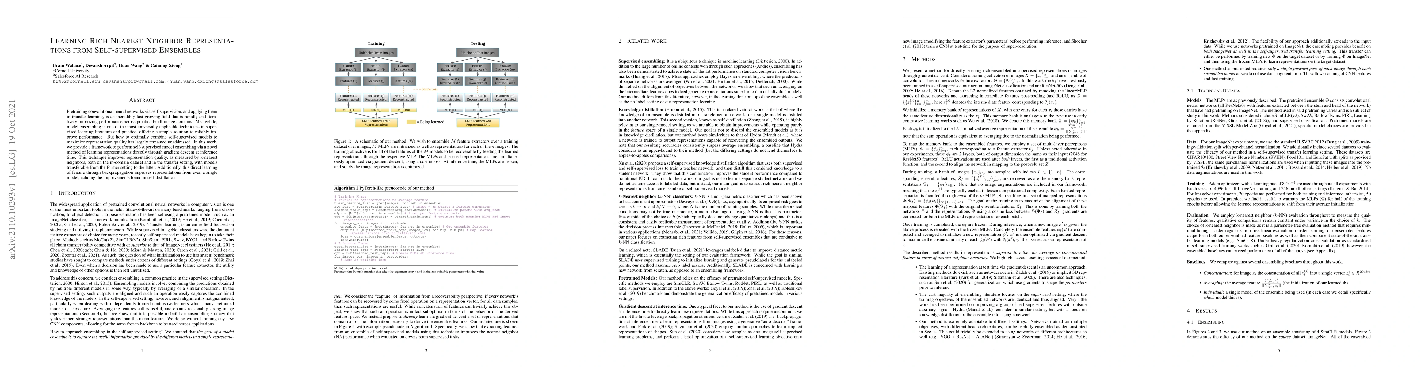 Pretraining convolutional neural networks via self-supervision, and applying them in transfer learning, is an incredibly fast-growing field that is rapidly and iteratively improving performance across practically all image domains. Meanwhile, model ensembling is one of the most universally applicable techniques in supervised learning literature and practice, offering a simple solution to reliably improve performance. But how to optimally combine self-supervised models to maximize representation quality has largely remained unaddressed. In this work, we provide a framework to perform self-supervised model ensembling via a novel method of learning representations directly through gradient descent at inference time. This technique improves representation quality, as measured by k-nearest neighbors, both on the in-domain dataset and in the transfer setting, with models transferable from the former setting to the latter. Additionally, this direct learning of feature through backpropagation improves representations from even a single model, echoing the improvements found in self-distillation.
