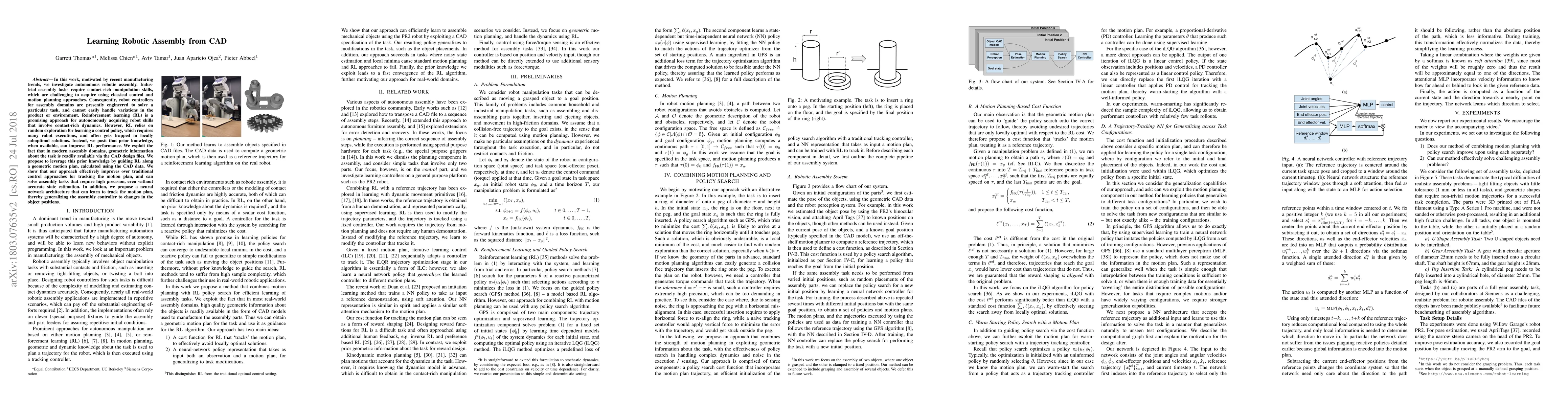 This paper explores using reinforcement learning (RL) to autonomously teach robots assembly skills, leveraging CAD design files for geometric guidance to improve precision and adaptability. The proposed method enhances traditional control approaches by effectively tracking a geometric motion plan derived from CAD data.