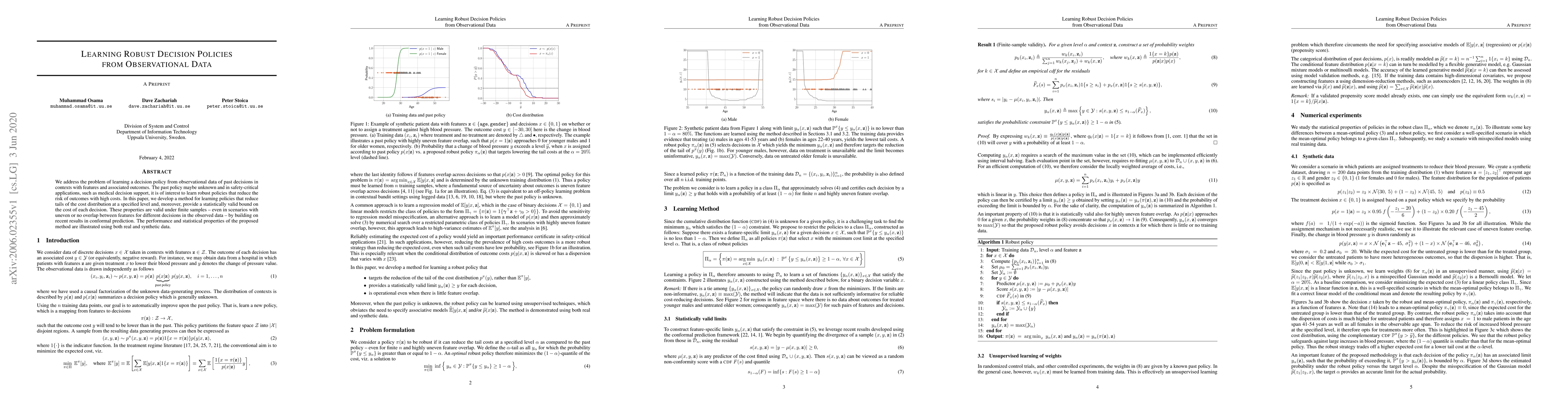 This paper proposes a method for learning robust decision policies from observational data, focusing on reducing high-cost outcomes in safety-critical applications. It leverages conformal prediction to provide statistically valid bounds on decision costs, ensuring performance under finite samples and uneven feature distributions.