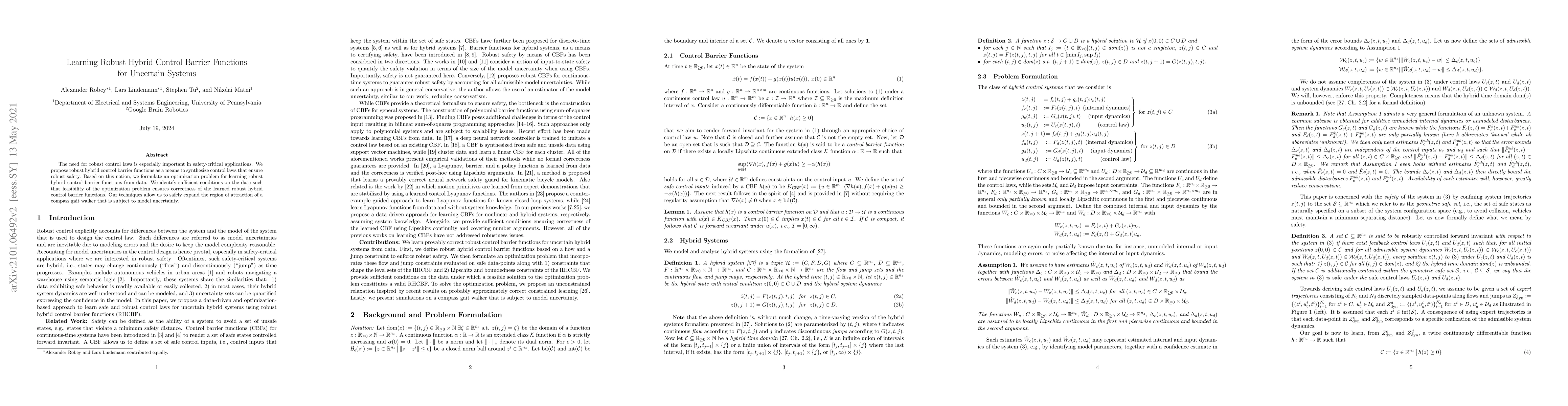 This paper proposes robust hybrid control barrier functions to ensure safety in uncertain systems, formulating an optimization problem to learn these functions from data. The authors identify conditions ensuring the learned functions are correct, demonstrating their effectiveness in expanding the safe operation region of a model-uncertain compass gait walker.