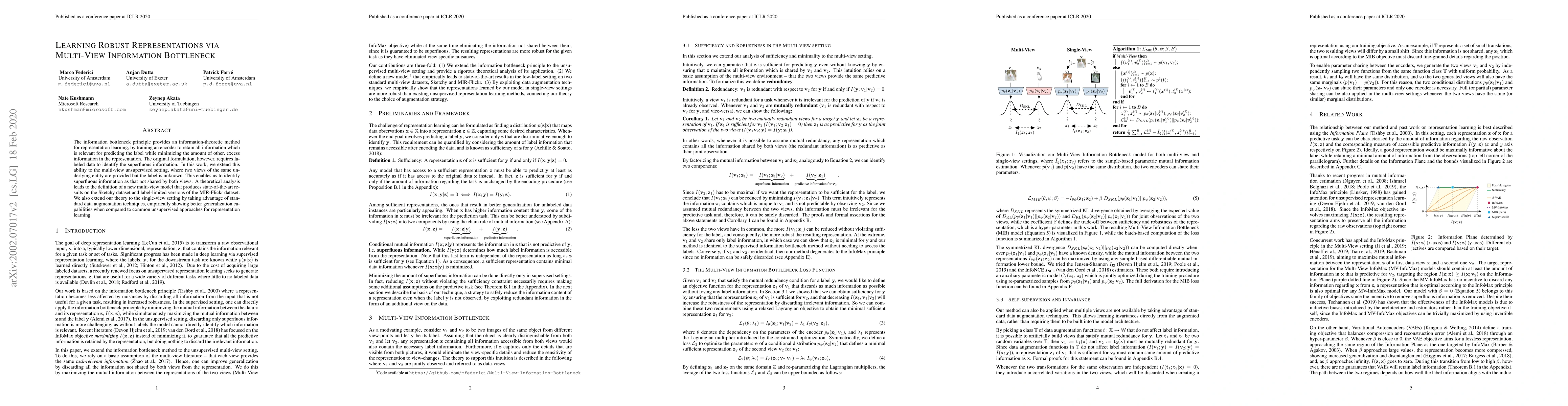 This paper proposes an unsupervised extension of the information bottleneck principle to identify and minimize superfluous information in multi-view data, achieving state-of-the-art results on Sketchy and MIR-Flickr datasets. It also extends the theory to single-view settings using data augmentation, demonstrating improved generalization.