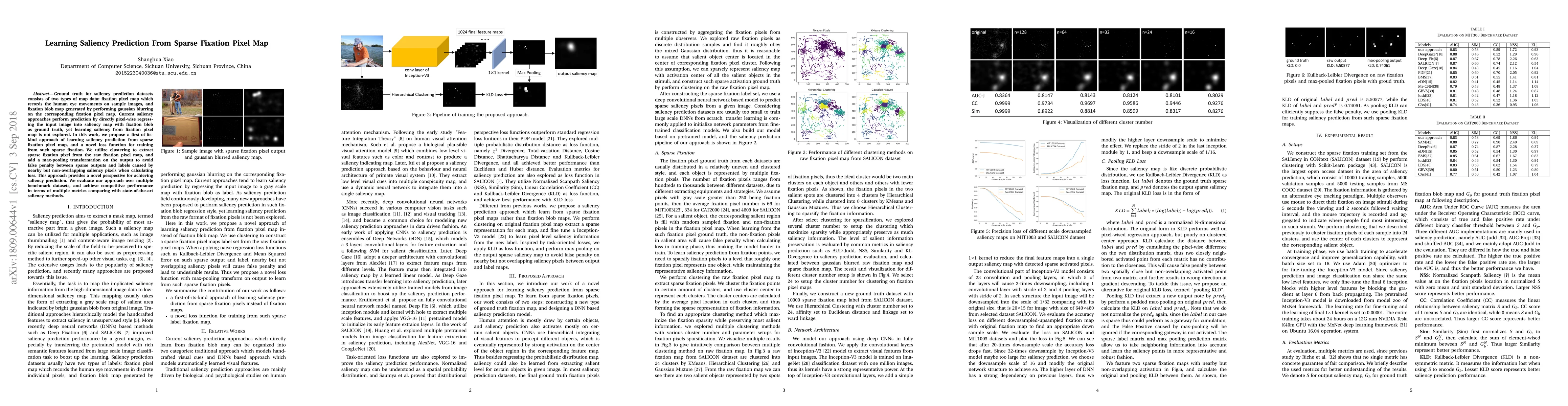 This paper proposes a novel approach to learning saliency prediction directly from sparse fixation pixel maps, which record human eye movements, rather than from fixation blob maps. The method includes clustering to extract sparse fixation pixels and a max-pooling transformation to mitigate false penalties, achieving competitive performance on benchmark datasets.