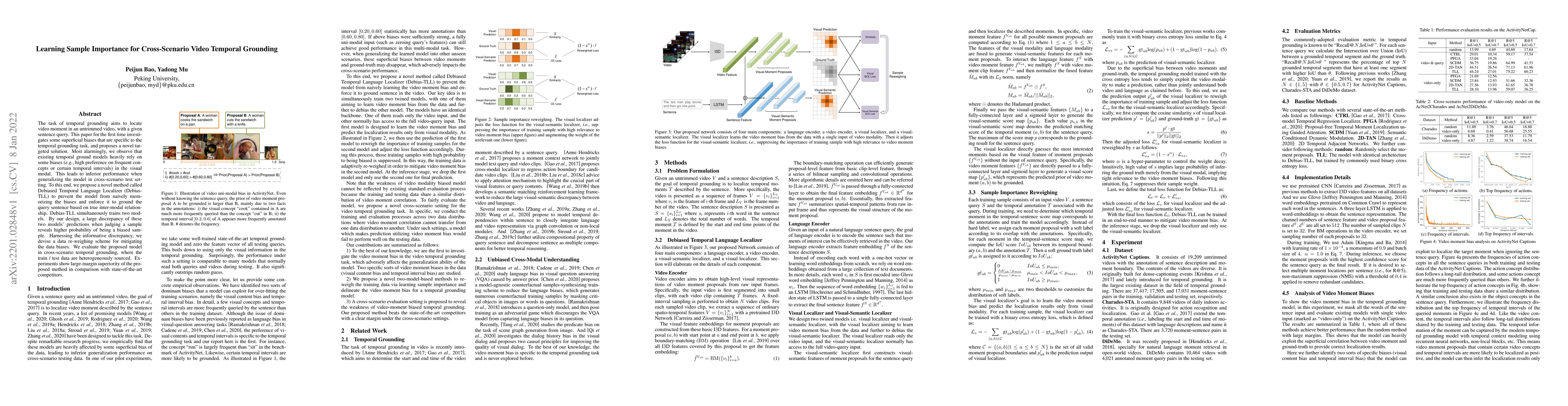 This paper investigates biases in temporal grounding models and proposes Debiased Temporal Language Localizer (DebiasTLL) to mitigate these biases, thereby improving model performance in cross-scenario settings. Experiments demonstrate significant improvement over state-of-the-art methods.
