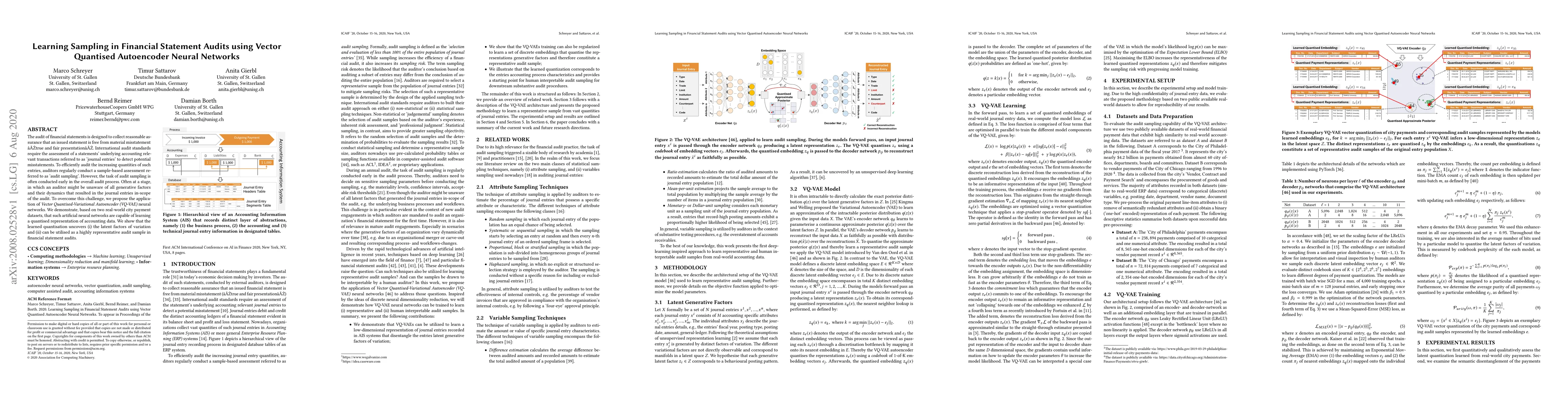 This research proposes using Vector Quantised-Variational Autoencoder (VQ-VAE) neural networks to enhance audit sampling in financial statement audits. The study demonstrates that VQ-VAEs can learn representative quantised representations of accounting data, revealing latent factors and providing a highly effective audit sample.